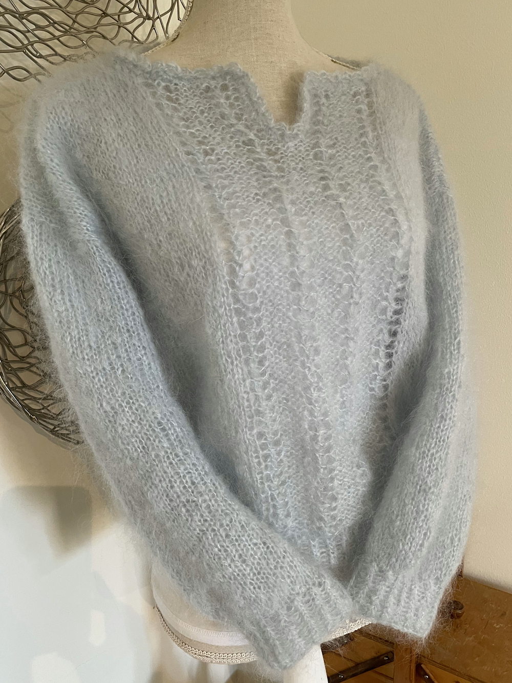 Til voksne liker jeg å kombinere ull og alpakka og strikker gjerne med garn som har en del polyamid, men da minst 70% ull. Polyamid gjør at ullen kan blåses myk og «fluffy» uten at det går for mye utover slitestyrke.